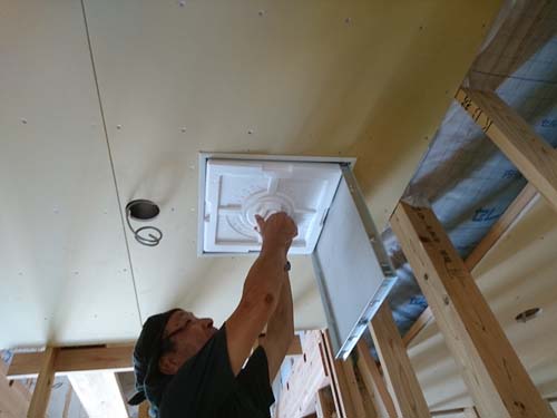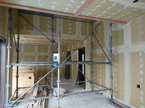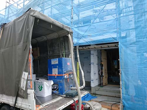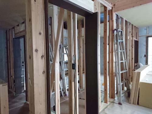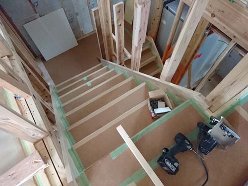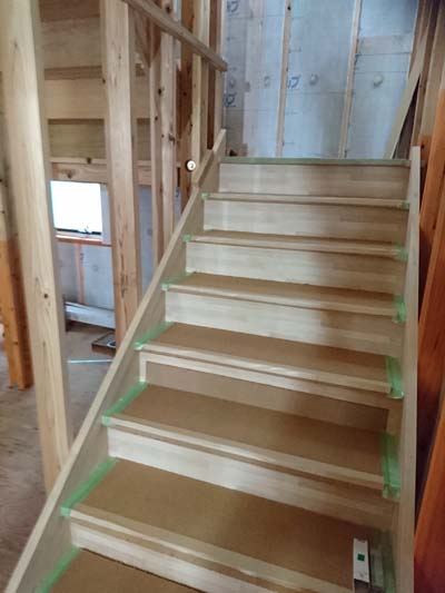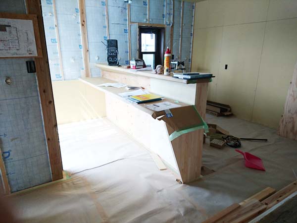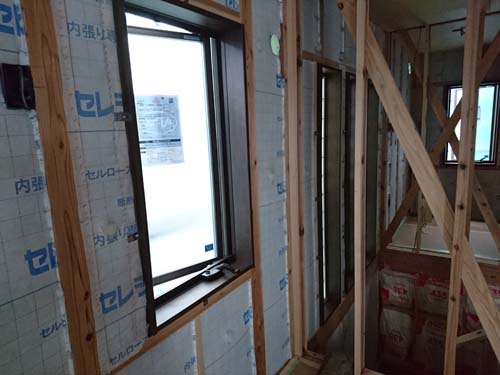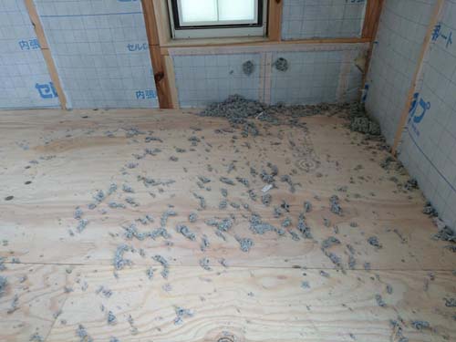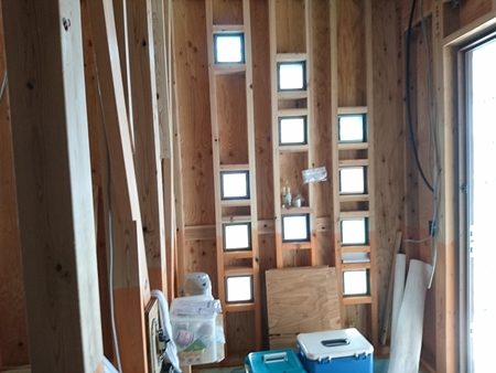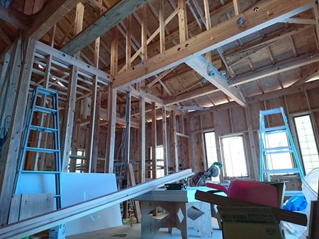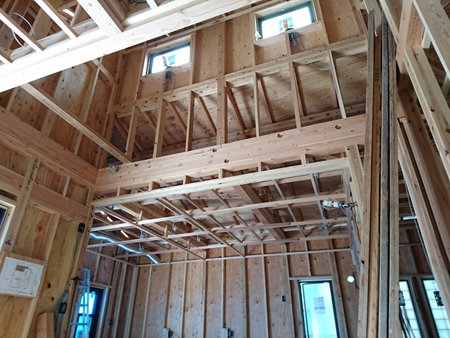 高さ関係がシビアなので、棟梁と念入りに確認!これから、断熱材(セルロースファイバー)施工へと進んで行きます。